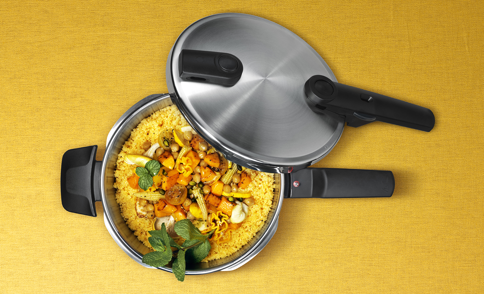 Niet iedere snelkookpan heeft meerdere kookstanden: een standaarduitvoering snelkookpan beschikt over het algemeen over één stand. Echter, hoe luxer de pan, hoe meer standen. De hogedrukpan waar wij mee werken heeft drie standen: een fijne stand voor de bereiding van delicate producten, een snelle stand voor stoofgerechten en een stoomstand voor stomen zonder druk. Wij hebben gekozen voor stand 1: de fijne stand. Dit is de traditionele stand waar alle snelkookpannen mee uitgerust zijn.